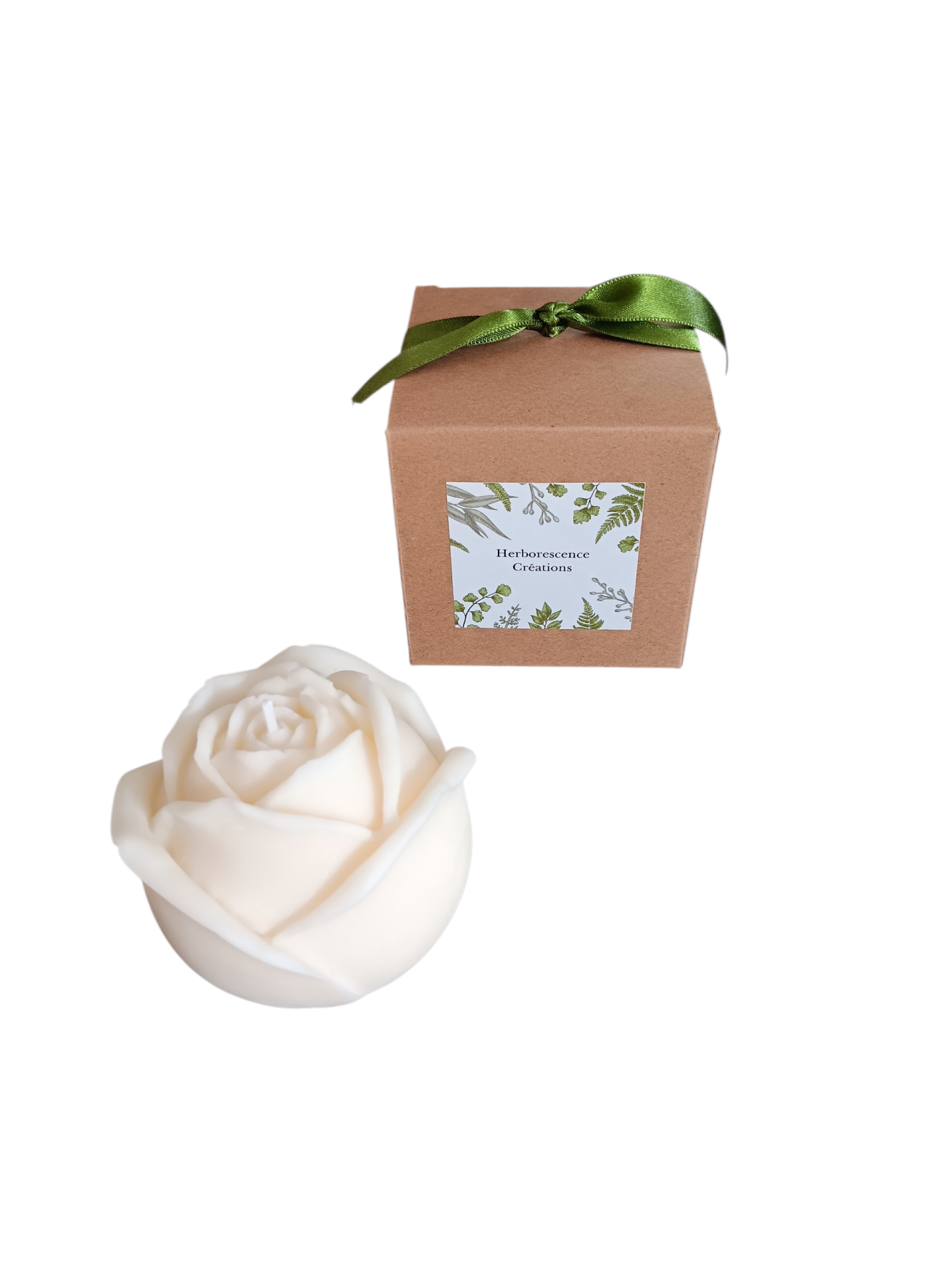 Bougie décorative en forme de rose , une mèche 100% coton et composée d'une cire de haute qualité, cire de soja & parfum de Grasse Rose D'antan .