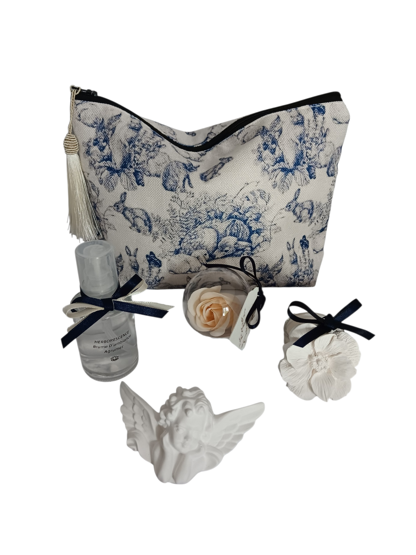 UneTrousse raffinée aux motifs Toile de Jouy .