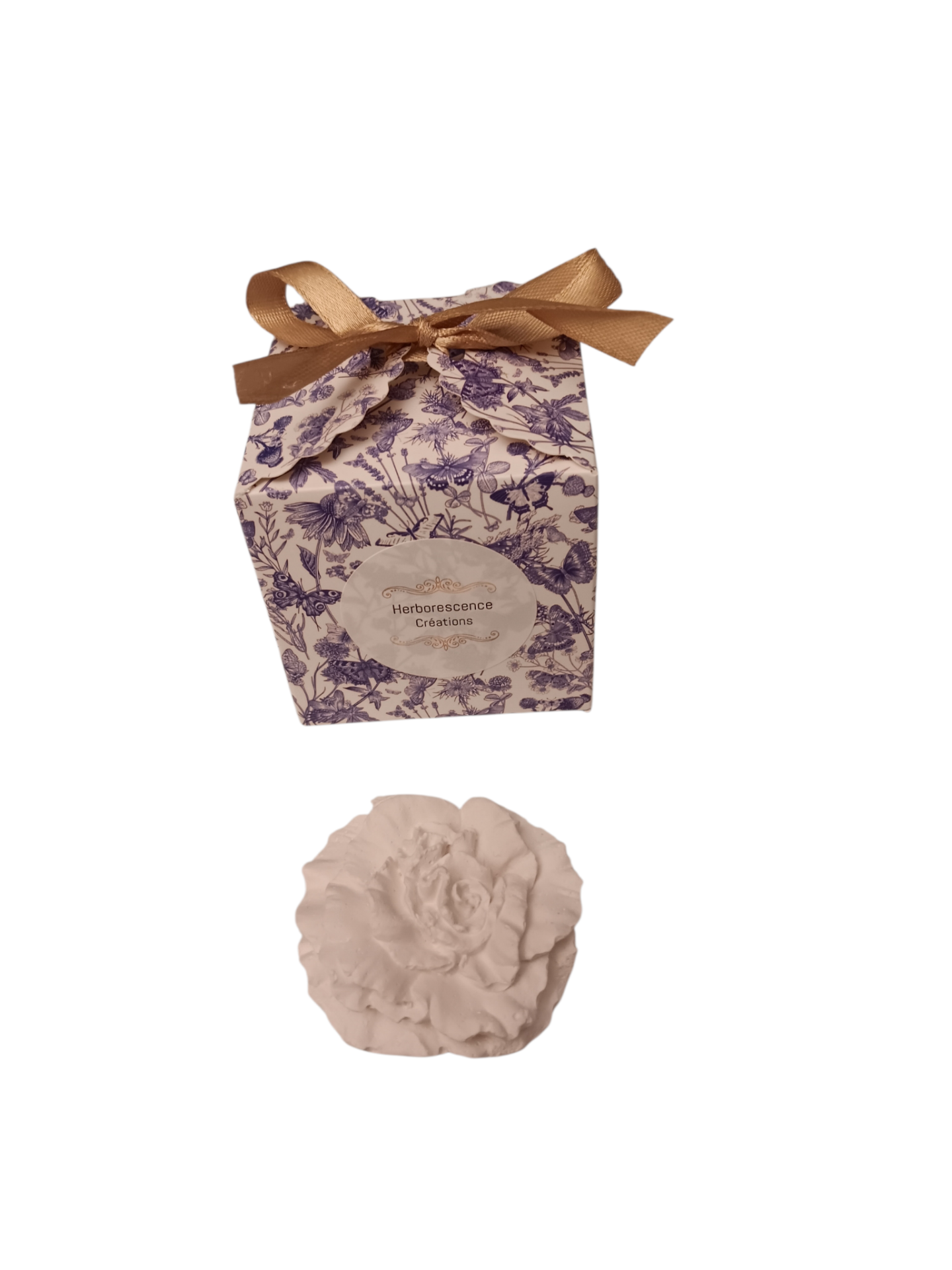 Décor parfumé en plâtre minéral , minutieusement moulé à la main ,et fabriqué dans notre atelier.Entièrement imprégné de parfum Rose D'antan ,ils libèrent lentement et pour longtemps sa douce senteur partout ou il est posé.Ils parfument les petits espaces de votre maison en les placant dans vos armoires, dressing,tiroirs......